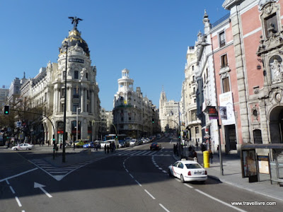 Plaza Puerta del Sol esta praça é o ponto de encontro dos Madrileños, é o marco zero da cidade, apresenta duas estátuas, a estátua del oso y el madroño e a estátua do rei Carlos I, o nome se deve a uma antiga porta que existia no local onde tinha um sol na fachada. Um dos prédios em destaque é a casa de correos.
